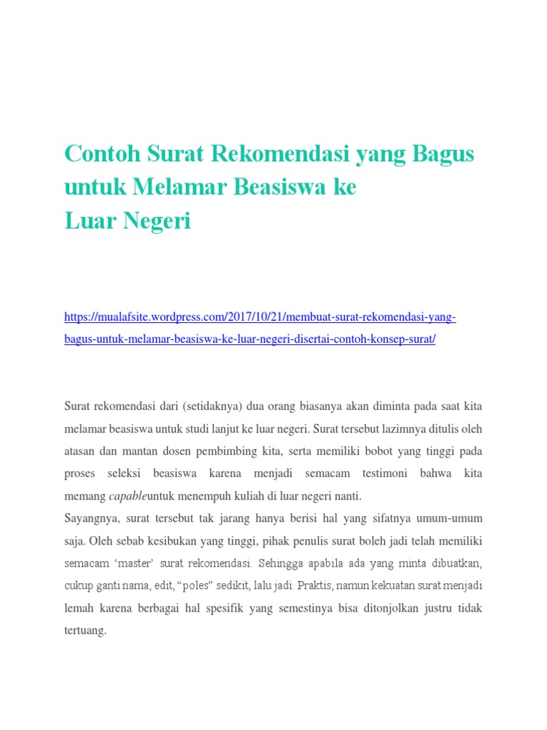 Surat ini biasanya dibuat oleh seseorang untuk mencari sponsor agar dapat menlanjutkan pendidikan. Untuk membuat surat yang benar, ada banyak contoh surat rekomendasi yang bisa diikuti. .dan juga contoh dari surat rekomendasi sekolah yang nantinya bisa anda jadikan sebagai salah satu referensi ketika anda diminta untuk membuat smk negeri 6 kota semarang dan siswa tersebut benar layak untuk bisa memperoleh beasiswa siswa berprestasi dengan berdasarkan evaluasi. Selain mempermudah, surat rekomendasi juga menjadi rujukan bagi anda yang akan melanjutkan studi ke luar negeri ataupun mendapatkan beasiswa. Contoh atau format surat rekomendasi di atas tidak bersifat rigid (tidak bisa diubah). Berikut adalah informasi beasiswa sd, smp, sma, madrasah, kuliah s1 s2 hingga s3 tahun 2020 baik di dalam negeri maupun luar negeri. Surat rekomendasi beasiswa atau recommendation letter adalah surat rekomendasi sekolah atau kuliah. Namun muncul pertanyaan, siapakah yang berhak menandatangani dan menulis surat rekomendasi? Ikuti strukturnya dan sesuaikan dengan isi surat rekomendasi anda. Itu tadi penjelasan singkat mengenai contoh surat rekomendasi beasiswa. Surat rekomendasi sangat penting untuk melamar suatu pekerjaan, beasiswa, atau mendaftarkan diri dalam suatu kegiatan. Savesave contoh surat rekomendasi beasiswa for later. Bagaimana bila saya fresh graduate?